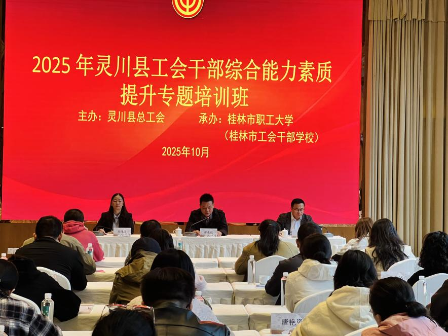 2025年10月22日至24日,由靈川縣總工會主辦、我校精心承辦的“2025年靈川縣工會干部綜合能力素質提升專題培訓班”在全州縣圓滿落幕。桂林市職工大學黨支部書記、校長蔣大為,靈川縣總工會黨組書記、副主席蔣永威出席開班儀式并致辭,來自靈川縣總工會“三委委員”及原產改協調小組相關成員單位的71名工會干部齊聚一堂,共同參與此次提升培訓。