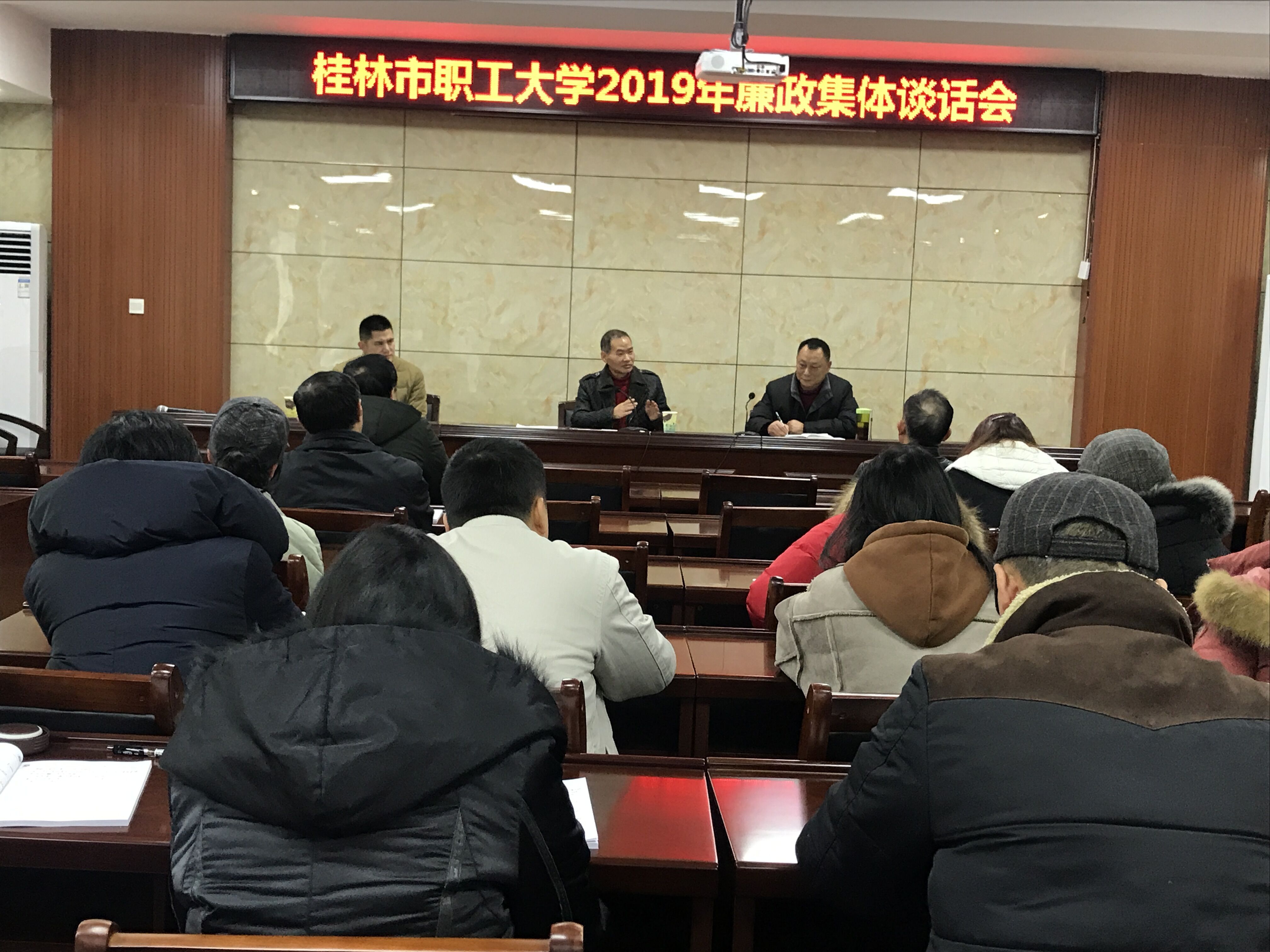 為深入學習貫徹黨的十九大精神特別是習近平新時代中國特色社會主義思想,全面落實從嚴治黨的決策部署與“兩個責任”,踐行“四種形態(tài)”,進一步推進全校黨風廉政建設,提高黨員干部廉潔自律意識,1月8日下午,我校在131會議室召開集體廉政談話會,校領導班子成員、部門中層正副職以及全體黨員參加會議。
