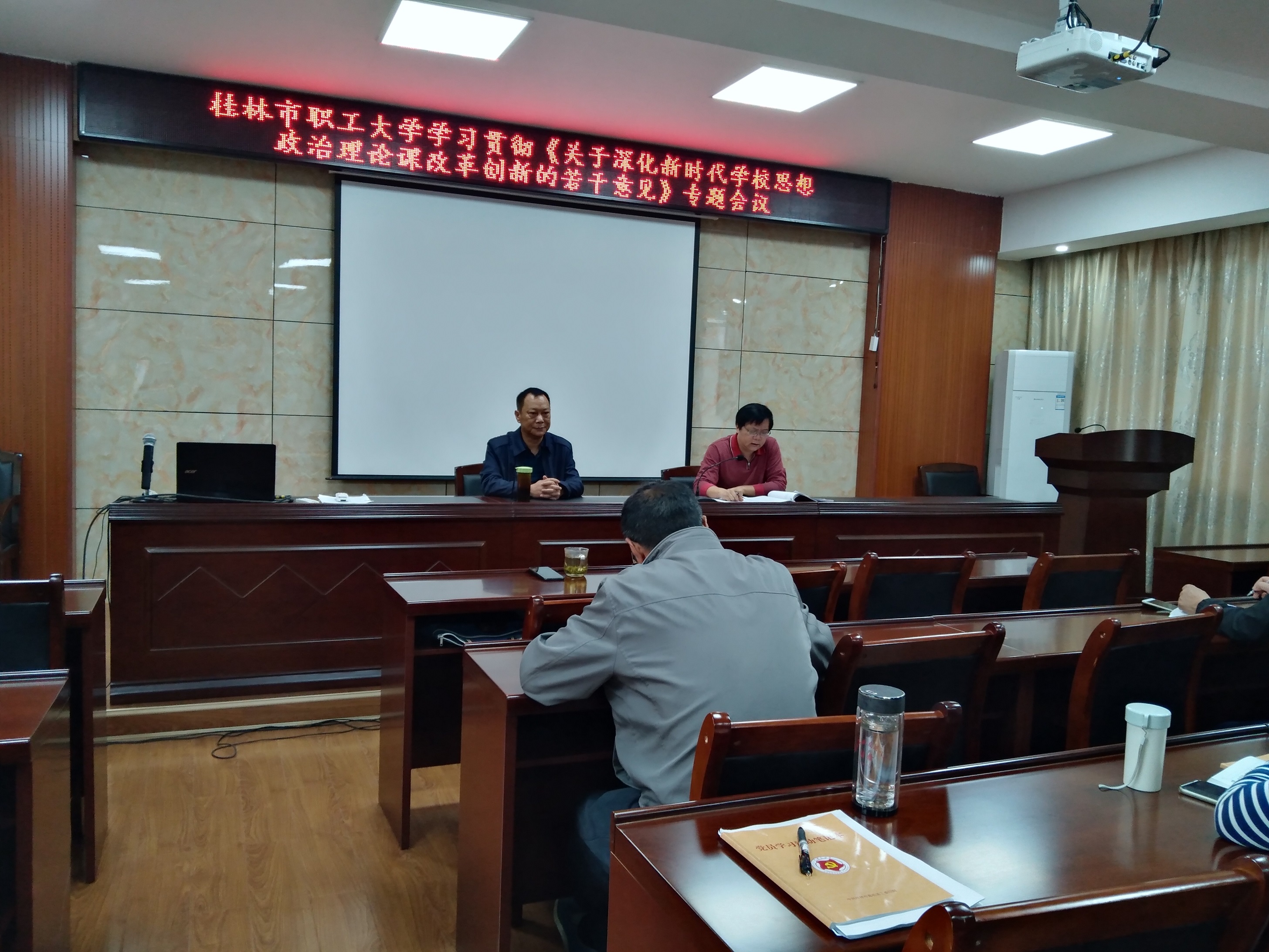 10月25日上午,學(xué)校召開(kāi)學(xué)習(xí)貫徹《關(guān)于深化新時(shí)代學(xué)校思想政治理論課改革創(chuàng)新的若干意見(jiàn)》(以下簡(jiǎn)稱《意見(jiàn)》)專題會(huì)議,學(xué)校全體教職工參加會(huì)議。