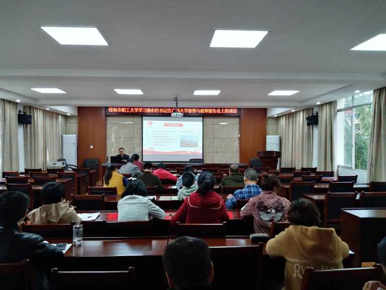 詹靖從“慶祝中華人民共和國(guó)成立70周年大會(huì)回放”,“ 奮斗史詩(shī),偉大傳奇,深刻學(xué)習(xí)領(lǐng)會(huì)習(xí)近平總書記在中華人民共和國(guó)成立70周年大會(huì)上重要講話”,“開啟新征程,同心圓夢(mèng) ,建設(shè)壯美廣西”,“ 牢記初心、不忘使命,續(xù)寫中華民族偉大復(fù)興的新篇章” 等四個(gè)方面,與全校教職工進(jìn)行交流探討。