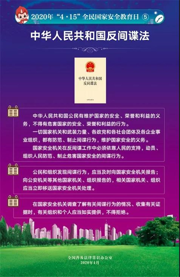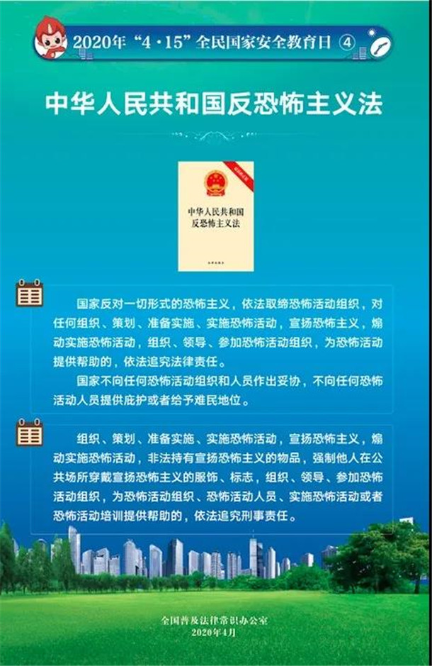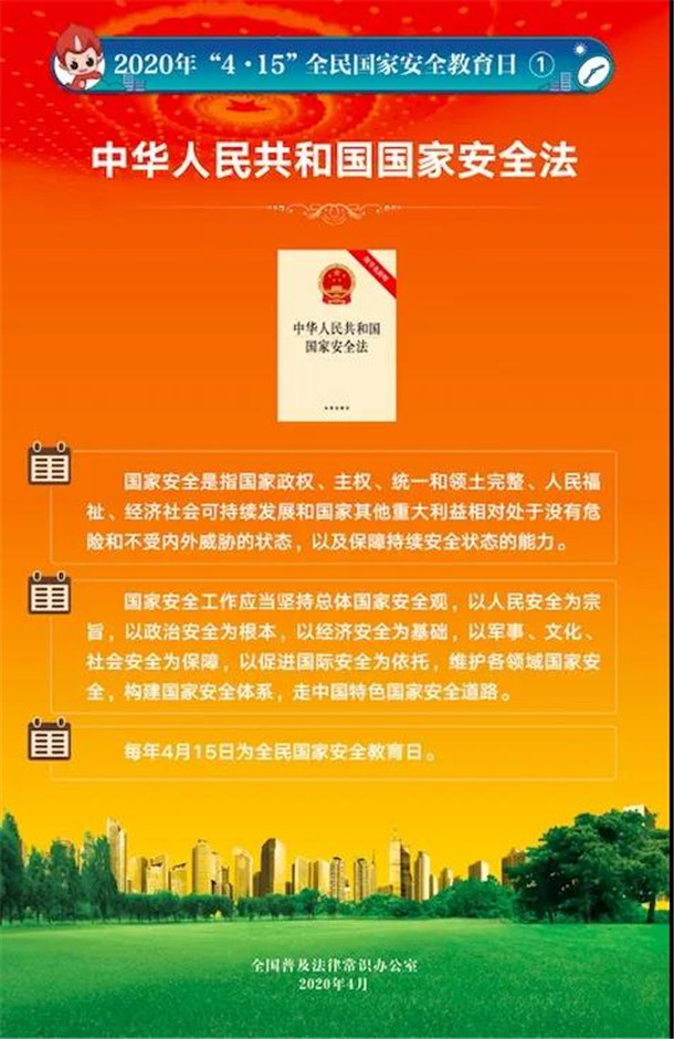 2020年4月15日是第五個全民國家安全教育日。今年的主題:“堅持總體國家安全觀,統(tǒng)籌傳統(tǒng)安全和非傳統(tǒng)安全,為決勝全面建成小康社會提供堅強保障。”