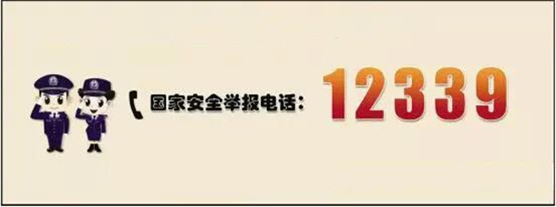 最后,任何組織和個人發(fā)現(xiàn)危害國家安全的情況和線索,均可以撥打下面的電話向國家安全機關(guān)舉報。