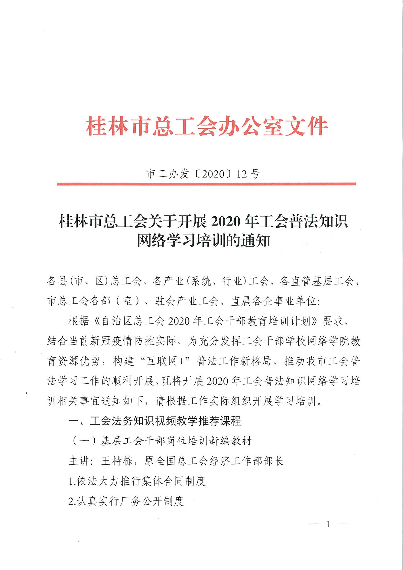 桂林市總工會關(guān)于開展2020年工會普法知識網(wǎng)絡(luò)學(xué)習(xí)培訓(xùn)的通知