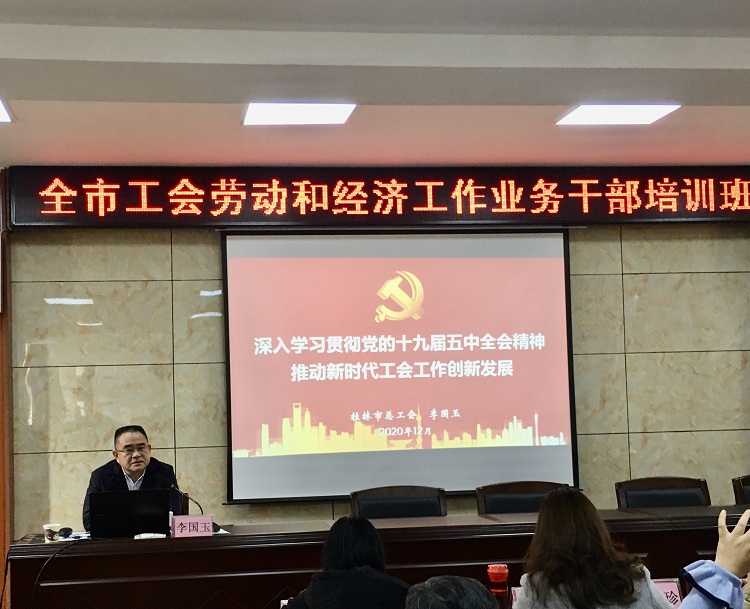12月11日上午,市總工會黨組成員、副主席李國玉同志以“深入學(xué)習(xí)貫徹黨的十九屆五中全會精神,推動新時(shí)代工會工作創(chuàng)新發(fā)展”為題為職工大學(xué)黨員干部、所分管部門的全體干部以及工會勞動和經(jīng)濟(jì)工作業(yè)務(wù)干部學(xué)員講授專題黨課。