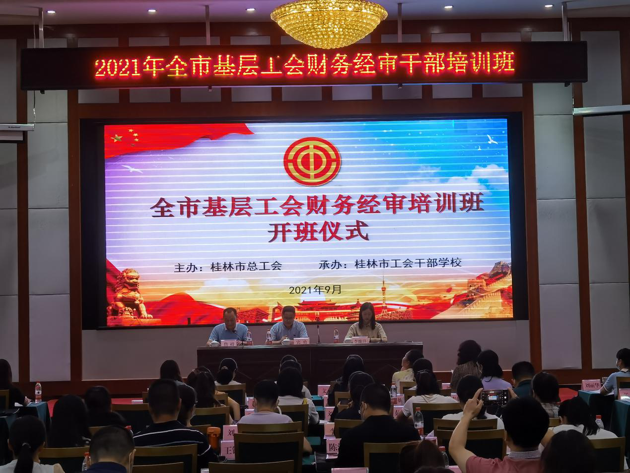 9月23日上午,桂林市總工會主辦、我校承辦的2021年全市基層工會財(cái)務(wù)經(jīng)審培訓(xùn)班在桂林山水大酒店多功能會議廳順利召開。市總工會黨組成員、經(jīng)審委主任賓勇、桂林市職工大學(xué)(桂林市工會干部學(xué)校)校長詹靖出席開班儀式并講話,市總工會財(cái)務(wù)資產(chǎn)部主管李維韡主持會議。