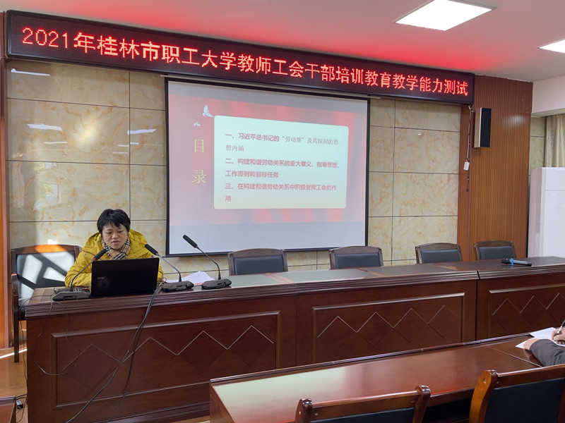為提高我校教師工會(huì)干部培訓(xùn)和職工崗位能力提升教育教學(xué)水平,切實(shí)加強(qiáng)我校師資隊(duì)伍建設(shè),引導(dǎo)我校教師積極投身工會(huì)干部培訓(xùn)、職工崗位能力提升課堂教學(xué)和學(xué)校職稱聘任制度的改革,提高課堂教學(xué)質(zhì)量,推動(dòng)學(xué)校轉(zhuǎn)型創(chuàng)新發(fā)展,按照年初工作計(jì)劃,2021年11月25日上午進(jìn)行了第一批教師教育教學(xué)能力測(cè)試工作。