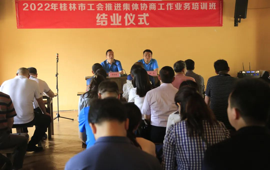 5月31日至6月2日,桂林市總工會(huì)主辦、我校承辦的2022年桂林市工會(huì)推進(jìn)集體協(xié)商工作業(yè)務(wù)培訓(xùn)班在陽朔順利舉辦。來自桂林各縣(市)、區(qū)總工會(huì)、產(chǎn)業(yè)工會(huì)、市直工會(huì)等50多個(gè)單位的工會(huì)主席、副主席、集體協(xié)商指導(dǎo)員、工會(huì)干部等近120人參加培訓(xùn)。市總工會(huì)黨組成員曹春新出席培訓(xùn)會(huì)。