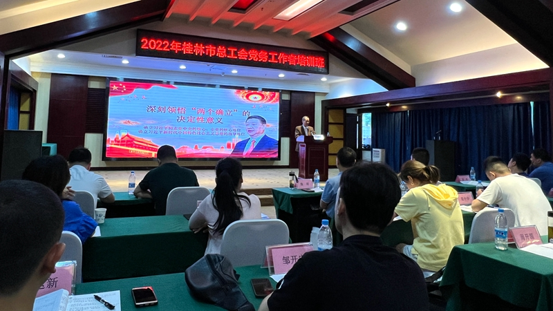 6月15日至17日,桂林市總工會(huì)舉辦,桂林市職工大學(xué)(桂林市工會(huì)干部學(xué)校)承辦的2022年黨務(wù)工作者培訓(xùn)班在陽(yáng)朔順利舉辦,來(lái)自機(jī)關(guān)及二層單位各黨支部的黨務(wù)工作者共40余人參加培訓(xùn),市總工會(huì)黨組成員周世偉出席開(kāi)班儀式并作開(kāi)班動(dòng)員。