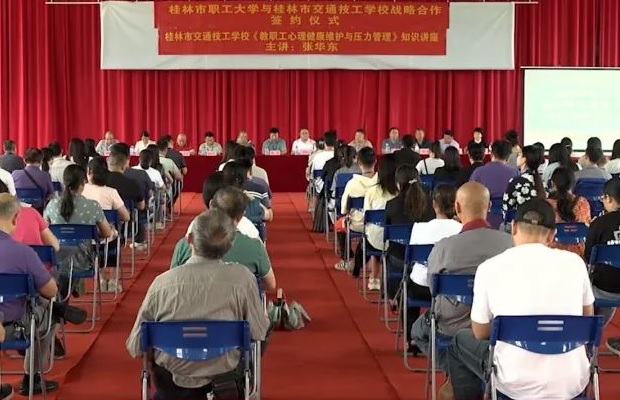 為推進產(chǎn)業(yè)工人隊伍建設(shè)改革高質(zhì)量發(fā)展,全力打造桂林世界級旅游城市,6月13日,桂林市職工大學(xué)與桂林市交通技工學(xué)校舉行戰(zhàn)略合作簽約儀式。桂林市總工會黨組成員、副主席李國玉,桂林市總工會勞動和經(jīng)濟工作部部長葛雷,桂林市職工大學(xué)校長蔣大為,桂林市交通技工學(xué)校校長韓冰,以及兩校相關(guān)領(lǐng)導(dǎo)出席了簽約儀式。