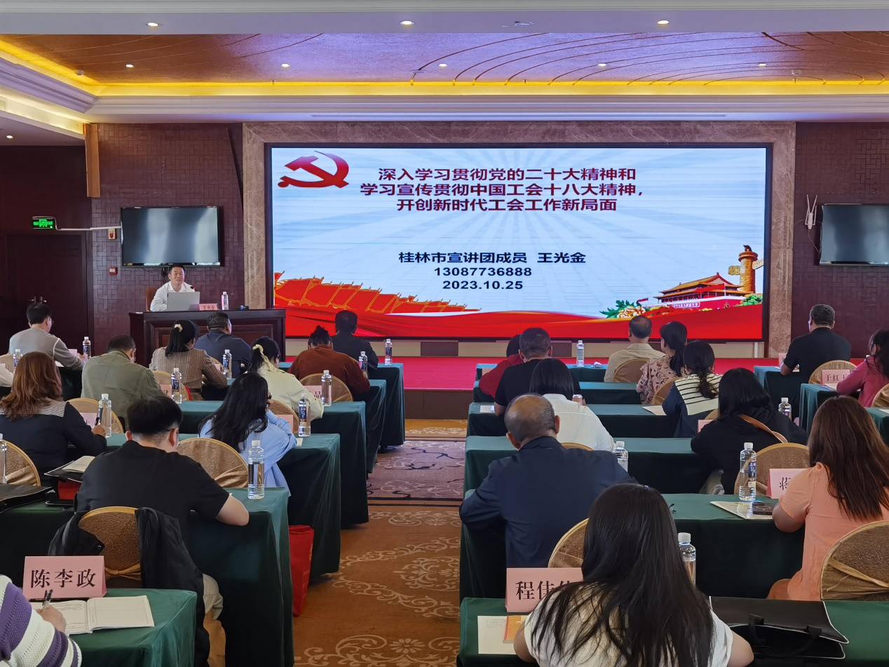 此次培訓(xùn)旨在深入學(xué)習(xí)貫徹黨的二十大精神,進(jìn)一步提高工會干部的理論知識、業(yè)務(wù)能力和工作水平。培訓(xùn)班邀請了桂林市總工會、桂林市人力資源和社會保障局、自治區(qū)總干校等機(jī)關(guān)、院校的領(lǐng)導(dǎo)、專家為學(xué)員授課,課程內(nèi)容既有理論學(xué)習(xí)又有現(xiàn)場教學(xué),授課形式多樣,內(nèi)容豐富扎實(shí)。
