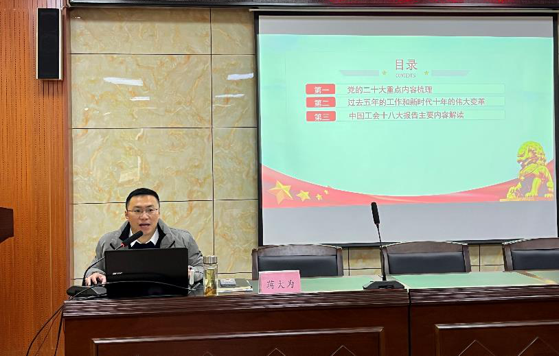 在授課中,蔣大為校長(zhǎng)通過數(shù)據(jù)對(duì)比、史實(shí)展現(xiàn)、實(shí)例分析、互動(dòng)提問的方式,對(duì)黨的二十大報(bào)告以及工會(huì)十八大報(bào)告進(jìn)行了由淺入深、由表及里的闡釋說明,并聚焦學(xué)校主責(zé)主業(yè),從干部素質(zhì)提升,職業(yè)技能培訓(xùn),勞模工匠培育等角度對(duì)如何進(jìn)一步增強(qiáng)履職能力,提出了工作要求和建議。