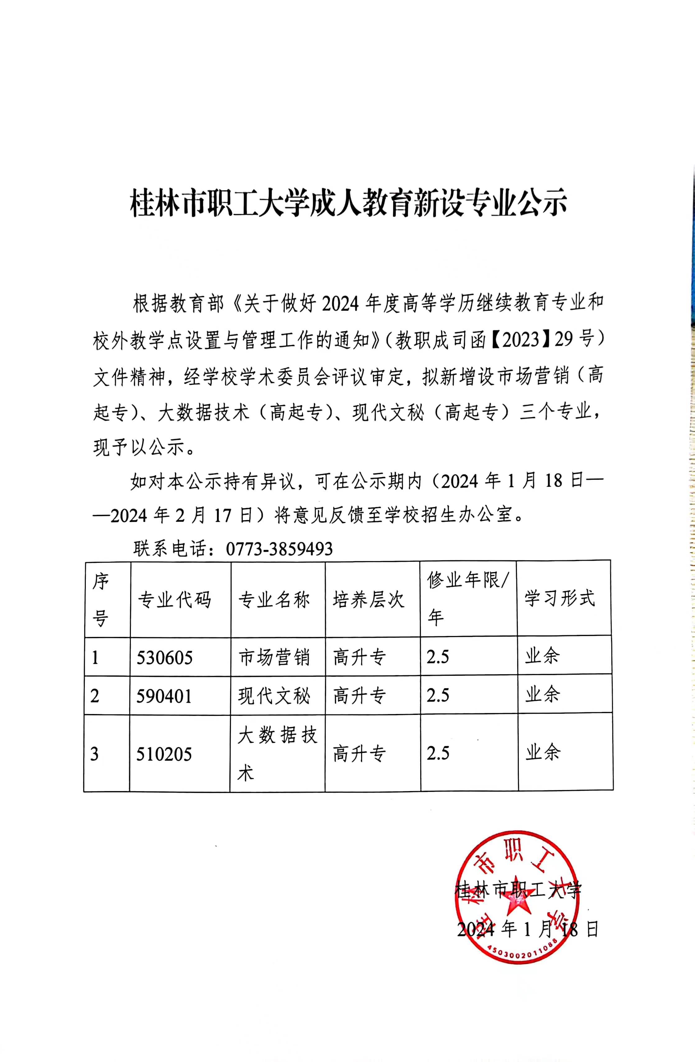 桂林市職工大學(xué)成人教育新設(shè)專業(yè)公示