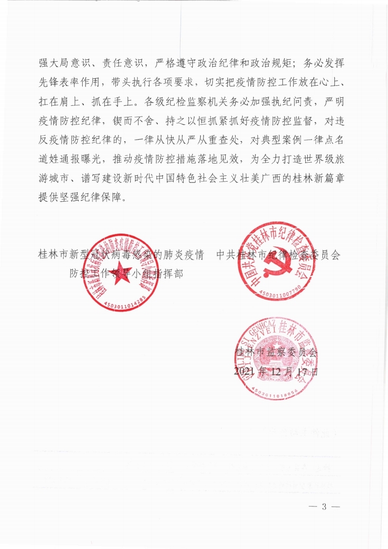 桂林市監(jiān)察委員會關(guān)于疫情防控紀(jì)律“十嚴(yán)格十嚴(yán)禁”的通知