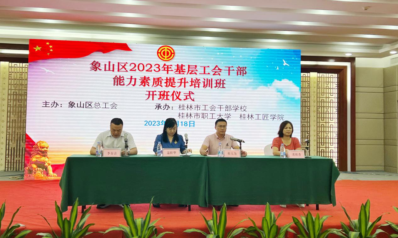 為引導(dǎo)基層工會(huì)干部不忘初心,牢記使命,全面強(qiáng)化和系統(tǒng)掌握業(yè)務(wù)知識(shí),切實(shí)增強(qiáng)履職能力,9月18日,由象山區(qū)總工會(huì)主辦,桂林市職工大學(xué)(桂林市工會(huì)干部學(xué)校、桂林工匠學(xué)院)承辦的象山區(qū)2023年基層工會(huì)干部能力素質(zhì)提升培訓(xùn)班在陽(yáng)朔順利召開。象山區(qū)政協(xié)副主席、區(qū)總工會(huì)主席聶桂華出席開班儀式并作動(dòng)員講話,桂林市職工大學(xué)(桂林市工會(huì)干部學(xué)校、桂林工匠學(xué)院)校長(zhǎng)蔣大為作開班致辭。