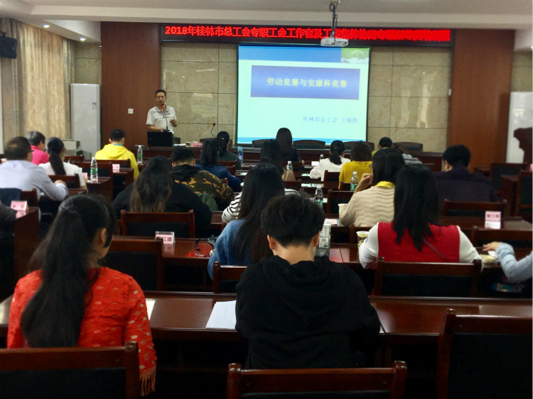 桂林市總工會勞動保護工作部部長王鏡凱在給學(xué)員授課