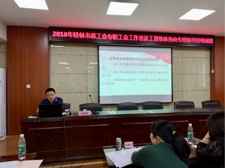 桂林市總工會黨組成員、副主席宋伊寧在給學(xué)員授課