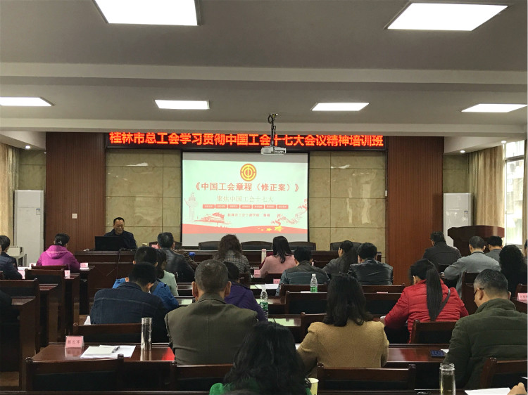 參加此次培訓班的學員紛紛表示會后要繼續(xù)認真學習領會大會精神,以習總書記重要講話精神和大會精神為指導,認真落實中國工會十七大提出的工作目標任務,更好地團結動員全市廣大職工充分發(fā)揮主力軍作用,為建設美麗桂林做出更多更大的貢獻。