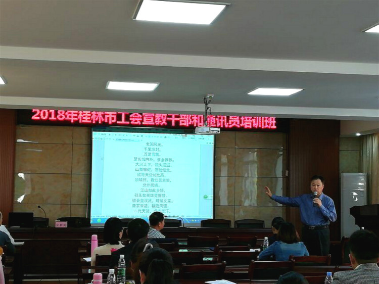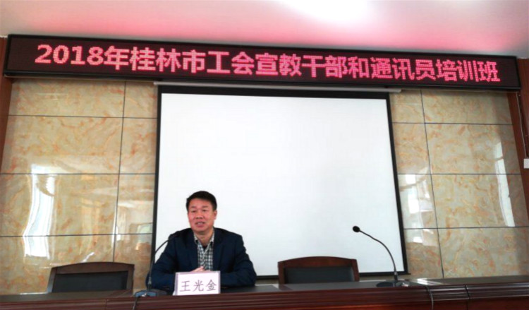 桂林市總工會(huì)黨組成員、桂林市教育工會(huì)主席王光金做開(kāi)班動(dòng)員,并講授如何在新形式下加強(qiáng)工會(huì)意識(shí)形態(tài)工作