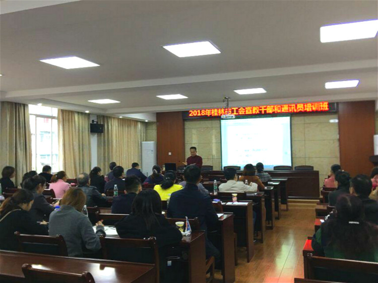 為了更好的學(xué)習(xí)宣傳貫徹習(xí)近平總書(shū)記重要講話和中國(guó)工會(huì)十七大精神,進(jìn)一步加強(qiáng)工會(huì)宣教干部和通訊員隊(duì)伍建設(shè),提升工會(huì)宣教干部和通訊員的業(yè)務(wù)能力和理論水平,2018年11月29日至30日,桂林市工會(huì)宣教干部和通訊員培訓(xùn)班在我校舉辦。
