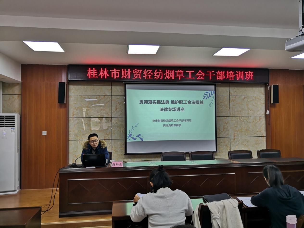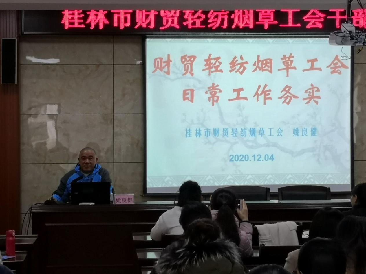 12月4日,由桂林市總工會財貿(mào)輕紡煙草工會主辦,桂林市工會干部學校(桂林市職工大學)承辦的桂林市財貿(mào)輕紡煙草工會干部培訓班在我校召開。