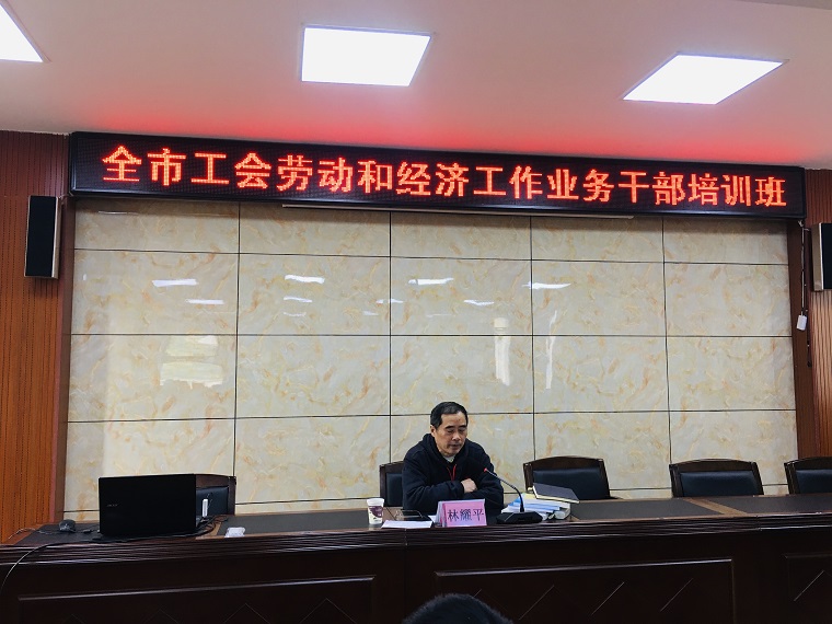 市總工會(huì)勞動(dòng)與經(jīng)濟(jì)部部長(zhǎng)葛雷為學(xué)員進(jìn)行工會(huì)勞動(dòng)經(jīng)濟(jì)工作業(yè)務(wù)培訓(xùn)