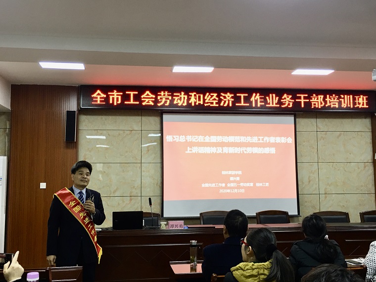 為認(rèn)真學(xué)習(xí)貫徹黨的十九屆五中全會(huì)精神和習(xí)近平總書記在全國(guó)勞動(dòng)模范和先進(jìn)工作者表彰大會(huì)上的重要講話精神,認(rèn)真履行工會(huì)維護(hù)廣大職工安全健康權(quán)益職責(zé),12月10日至12月11日,市總工會(huì)在我校舉辦了全市工會(huì)勞動(dòng)和經(jīng)濟(jì)工作業(yè)務(wù)干部培訓(xùn)班。