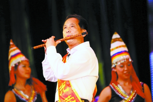 王遠(yuǎn)文主席在晚會(huì)上進(jìn)行笛子演奏