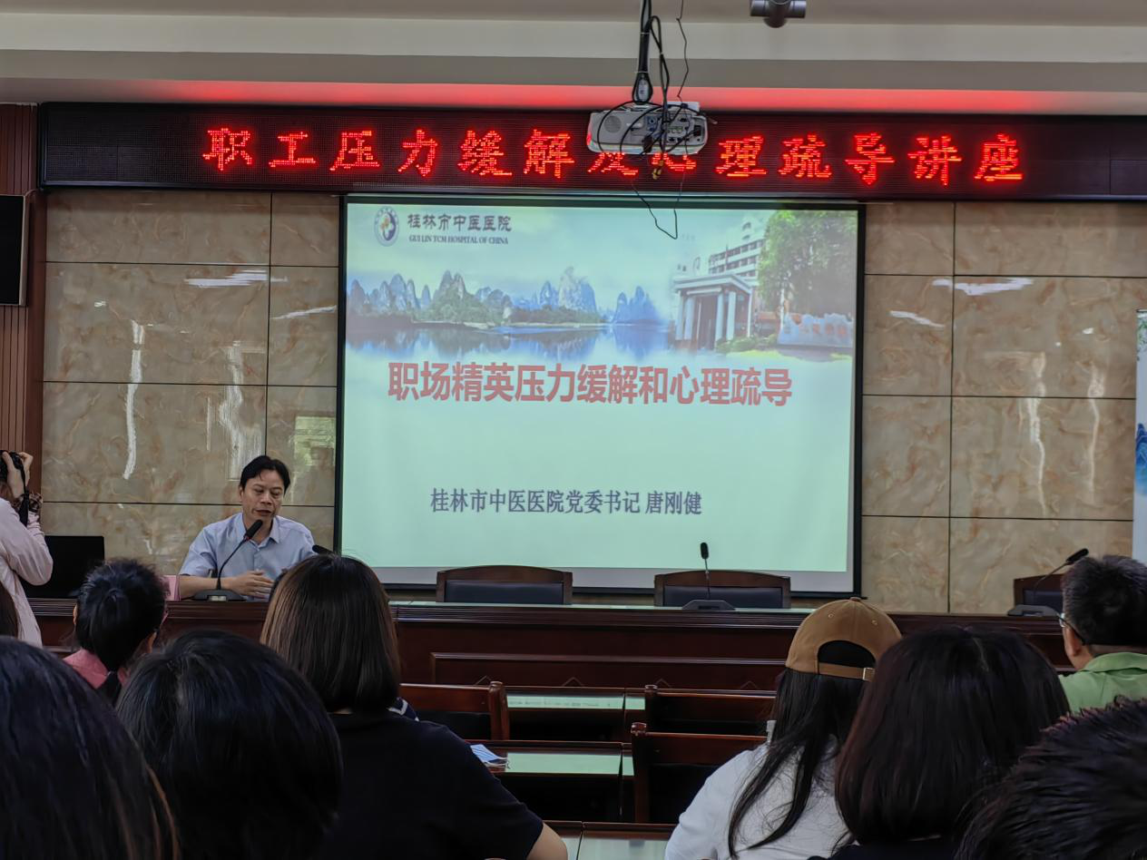 本次培訓(xùn)邀請了桂林市中醫(yī)醫(yī)院黨委書記唐剛健授課。唐書記緊密結(jié)合自身工作經(jīng)驗,從自身經(jīng)歷入題和大家交流心得感悟,在活躍的氣氛中引導(dǎo)大家如何重視提升職業(yè)素養(yǎng)及心理健康,跟大家一起分享了改變自我心態(tài)、塑造正確職業(yè)觀的有效方法,鼓勵在場職工增強(qiáng)正面思考能力和抗壓能力,樹立正確的職業(yè)態(tài)度和良好的職業(yè)素養(yǎng)。