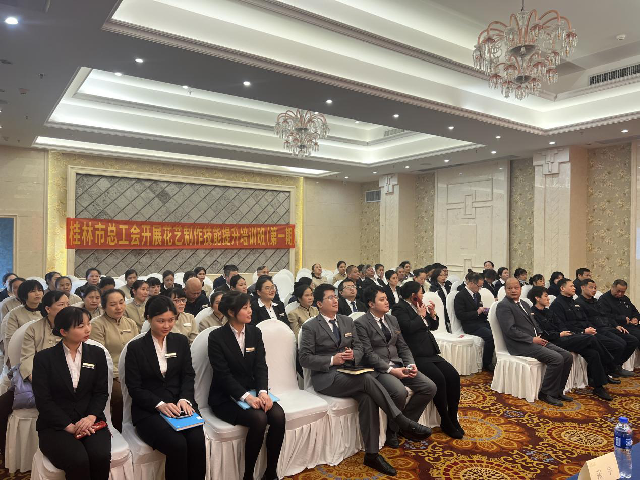 3月7日下午,桂林市總工會(huì)主辦、桂林市職工大學(xué)(桂林市工會(huì)干部學(xué)校、桂林工匠學(xué)院)、桂林金馬職業(yè)培訓(xùn)學(xué)校聯(lián)合承辦的花藝制作培訓(xùn)班在桂林賓館順利開班。