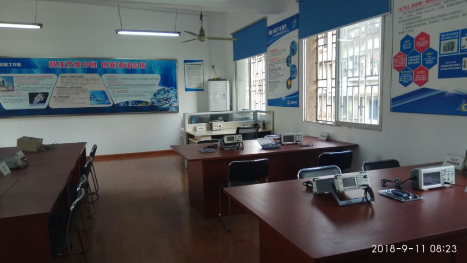單片機(jī)和嵌入式系統(tǒng)開發(fā)實(shí)驗(yàn)室面積70平米,內(nèi)部設(shè)施齊全。配置多種UNI-T系列數(shù)字存儲示波器、數(shù)字信號發(fā)生器、精密電源和各類數(shù)字萬用表等實(shí)驗(yàn)儀器,多種型號單片機(jī)仿真開發(fā)系統(tǒng)、編程調(diào)試系統(tǒng)及演示實(shí)驗(yàn)系統(tǒng),備有多種不同類型單片機(jī)IC(芯片)和電子電路開發(fā)實(shí)驗(yàn)用元、器件,配備多種裝配、調(diào)試工具和耗材,實(shí)驗(yàn)室可供25人同時實(shí)驗(yàn)操作。