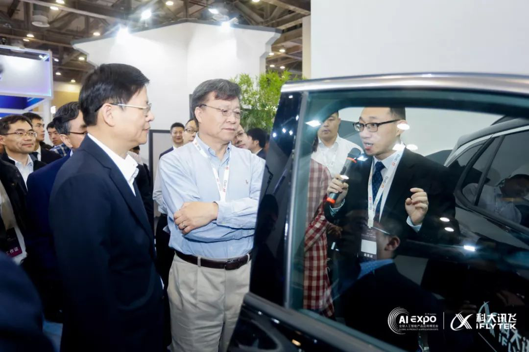 大會首日,科技部高新司副司長梅建平和中國工程院院士、新一代人工智能產(chǎn)業(yè)技術創(chuàng)新戰(zhàn)略聯(lián)盟理事長高文等領導來到科大訊飛展臺參觀,科大訊飛在本屆智博會上首發(fā)的車載多分區(qū)語音交互和智能音箱系統(tǒng)引起了領導和嘉賓的注意。